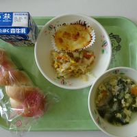 ツイストパン マカロニグラタン コーンサラダ ふわふわたまごのスープ 牛乳