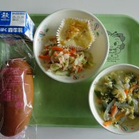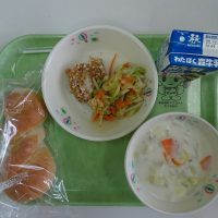 ツイストパン キャベツサラダ とりにくのコーンフレークやき はくさいのシチュー 牛乳