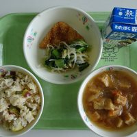 あきのかおりごはん こまつなともやしのおひたし ハムカツ だいこんのみそしる 牛乳
