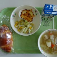 バターロール キャベツとコーンのソテー マカロニグラタン ポトフ 牛乳