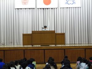 1年生の代表児童が2学期を振り返り作文を発表しました。
