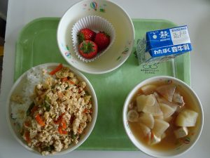 そぼろどん のっぺいじる いちご 牛乳