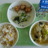 みんなでニコニコ仲良し給食 縦割り班で給食を食べました。 みんなで楽しく、おいしく食べました。 おにぎりなど主食のご用意ありがとうございました。 からあげ たまごやき きんぴらごぼう &nbs …